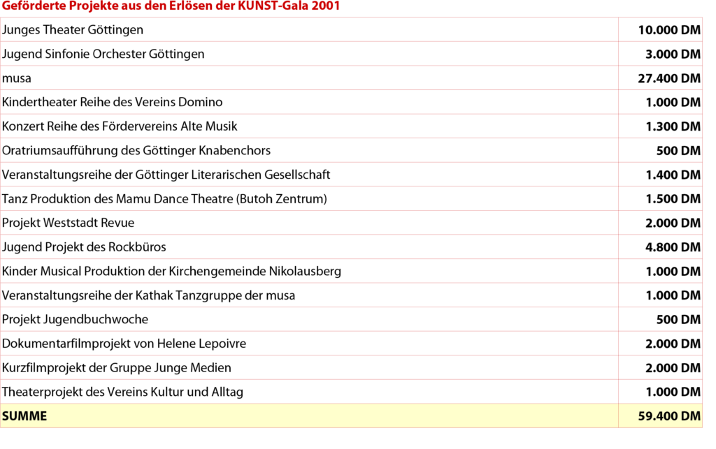 Geförderte Projekte 2001