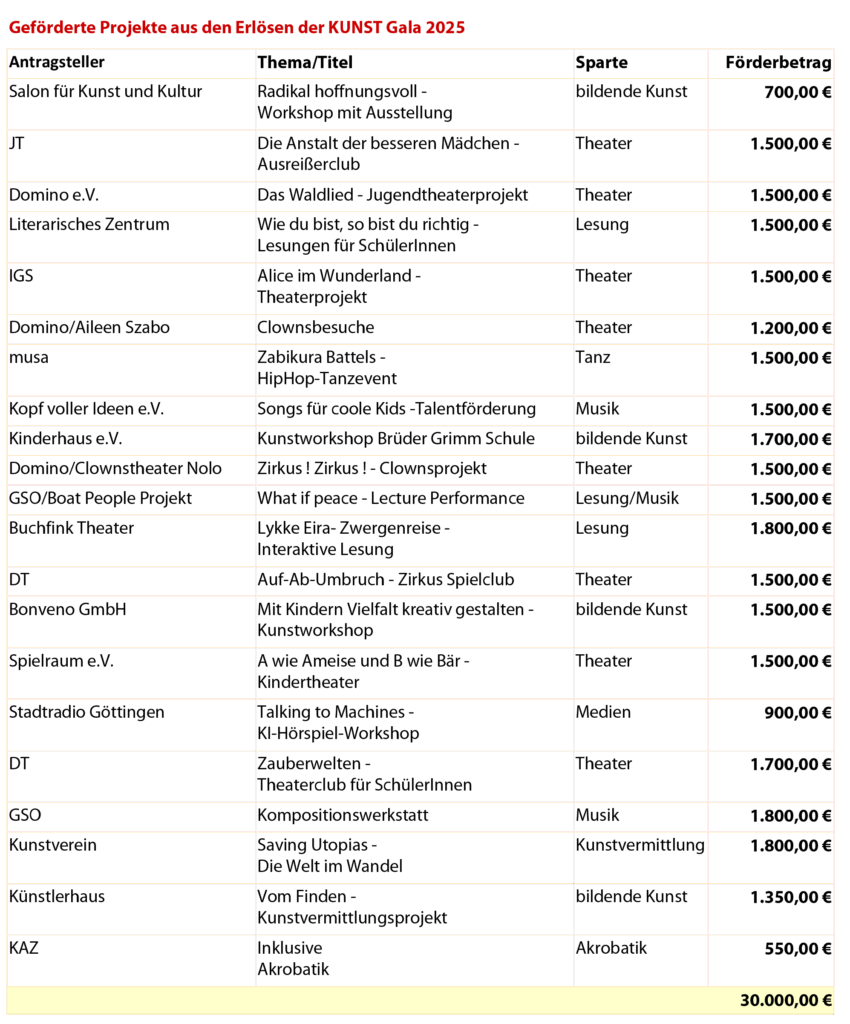 Verein KUNST e. V. fördert mit den Erlösen der KUNST-Gala Göttinger Kulturprojekte von, mit und für Kinder und Jugendliche. >>>mehr