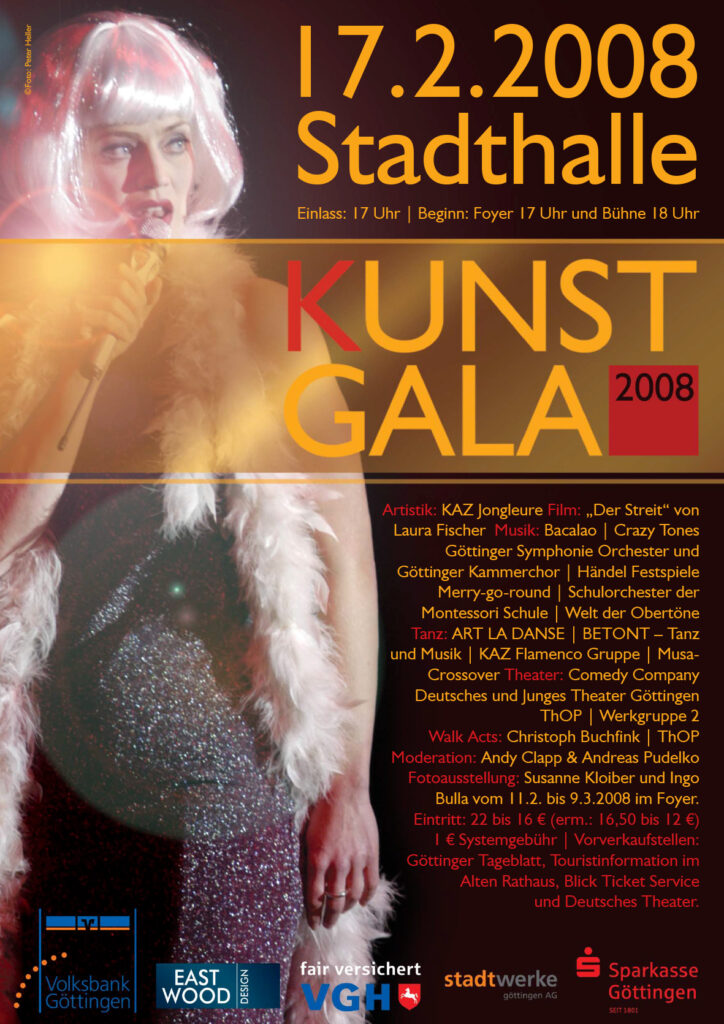 Artistik: KAZ Jongleure Film: Neue Medienszene Musik: Bacalao | Crazy Tones | Göttinger Symphonie Orchester und Göttinger Kammerchor | Händel Festspiele | Merry-go-round | Schulorchester der Montessori Schule | Welt der Obertöne Tanz: Art la Danse | BETONT – Tanz und Musik | KAZ Flamenco Gruppe | Musa-Crossover Theater: Comedy Company | Deutsches und Junges Theater Göttingen | ThOP | Werkgruppe 2 Walk Acts: Christoph Buchfink | ThOP