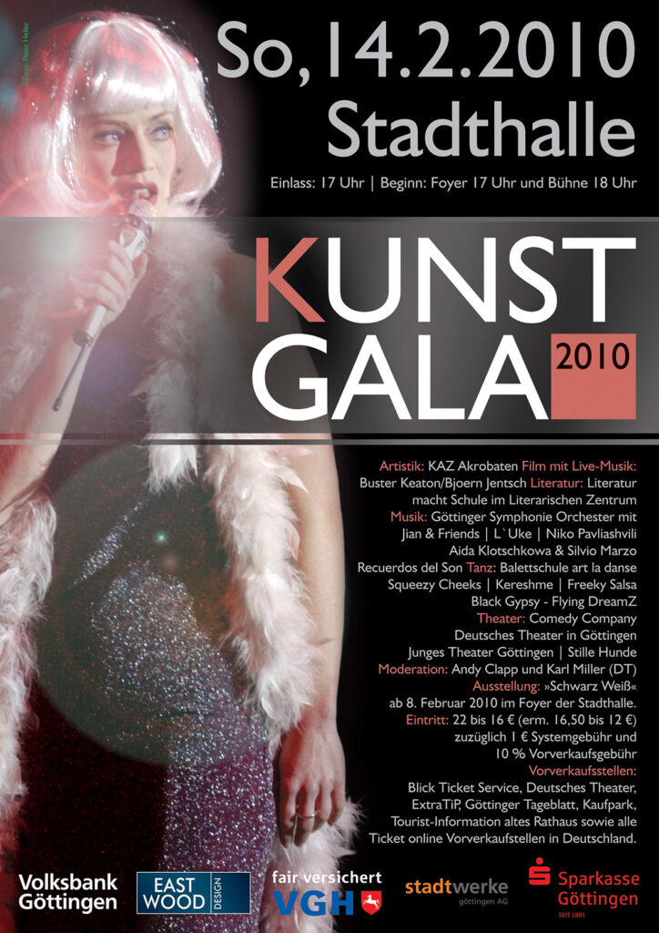 Die KUNST-Gala 2010 findet am 14. Februar 2010 wie immer in der Göttinger Stadthalle statt. Ein umfangreiches Programm mit 18 Auftritten im Foyer, auf 2 Foyer-Bühnen und der Bühne des großen Saals erwartet die Zuschauer.