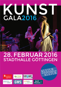 Die KUNST-Gala ist wohl die außergewöhnlichste Kulturveranstaltung in der Region: am Sonntag, 28. Februar 2016 ab 18 Uhr treten fast 150 KünstlerInnen aus zahlreichen Göttinger Kultur-Einrichtungen wie dem Deutschen Theater, dem Göttinger Symphonie Orchester, dem Jungen Theater, der Musa, dem KAZ oder von Art la Danse an einem Abend auf der Stadthallen-Bühne auf! Musik verschiedener Stilrichtungen, Theater, Tanz, Akrobatik und mehr: das alles gibt es bei der Göttinger Kunst-Gala zu sehen und zu erleben!